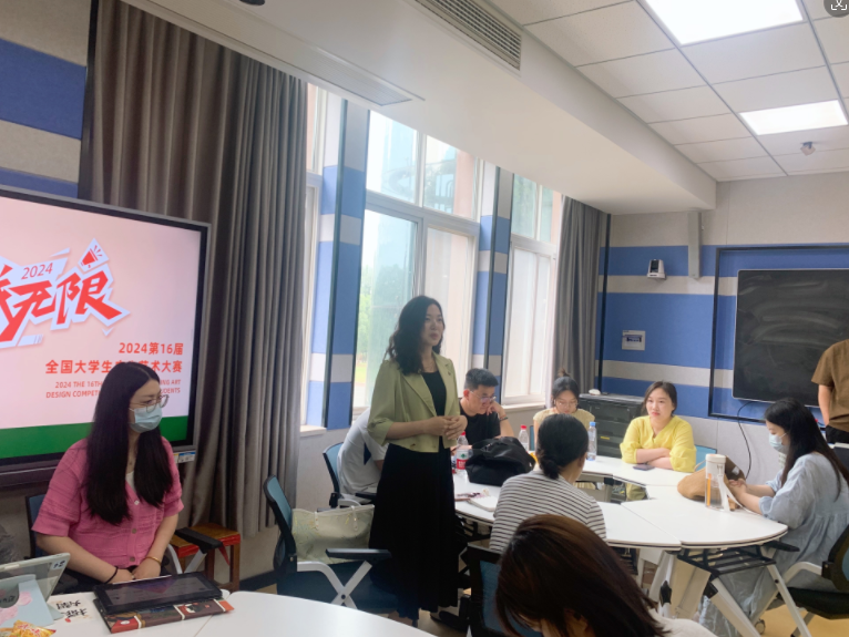 活动中多位教师发言,视觉传达设计专业教研室主任何伟重点分析了专业在竞赛中师生团队活动开展情况和竞赛经验分享。环境设计教研室主任张骁结合自身专业特点,从服务地方角度出发,分析了本专业的设计赋能和应用型人才培养的经验。青年教师娄濛、魏迁、解开根据自身实践案例和组织竞赛活动进行发言,沙龙活动过程讨论热烈。 最后,三位设计专业骨干教师徐文君、郑满意、姜笑凡进行了设计专业赛事解读,鼓励老师们积极指导学生参赛,通过参赛学生的表现情况和比赛结果,反思自身教学的方式方法是否存在问题,从而提升教学的实用性和针对性,与学生形成良性互动,达到“以赛促教”的效果,实现教学相长。