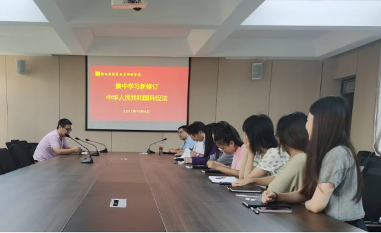 学院大学生应征入伍工作专干刘加宽老师代领大家集中学习新修订的《中华人民共和国兵役法》,对其要点部分进行了解读。