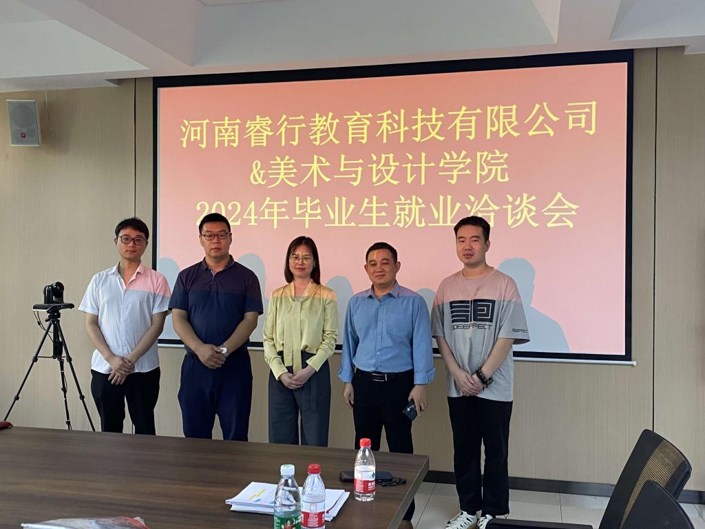 2023年10月15日下午,美术与设计学院邀请睿行教育科技有限公司在艺术楼215会议室举行2024届毕业生就业洽谈会,用人单位负责人江锟,学院党总支书记袁军、学工干事秦金峰、毕业班辅导员余浩和毕业生代表参加了会议。