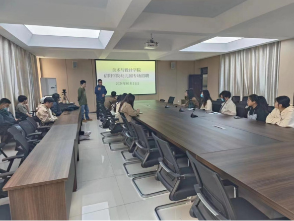 为深入贯彻落实全国普通高等学校毕业生就业创业工作,切实扛牢我院毕业生就业的政治责任,全力促进我院2024届毕业生更充分更高质量就业,3月11日上午,信阳学院幼儿园园长张红红应邀来我院招聘2024届应届毕业生。学院学工干事秦金峰,毕业班辅导员和毕业生代表参加了洽谈会。