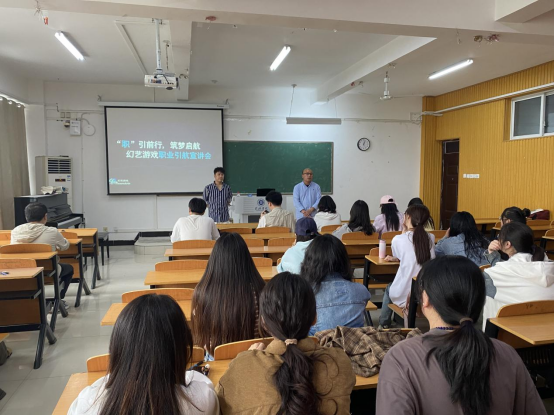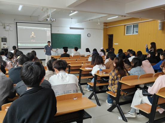 公司负责人王涛做宣讲。他首先分享了个人的职业经历以及公司目前主要的业务情况,并通过介绍公司的运营模式,对于人才的培养以及在行业的资源优势等,强调了公司在影视、游戏、动画等视效领域具有一定的行业竞争力。其次,通过与学生的互动,并围绕实战项目为学生们详细地演示了当下动作设计岗位的基本工作流程,以及能够正式进入工作环节的基本技术能力。最后,王涛针对同学们的职业生涯规划等方面,讲授了求职、面试方式及技巧,让学生们更深刻了解了当前就业形势,帮助大家更深入全面地思考未来就业及发展方向。