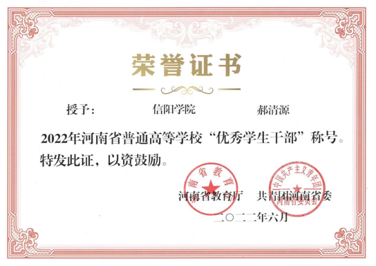 郝清源,男,中共党员,河南商丘人,1999年1月出生。信阳学院美术与设计学院2019级美术学本科1班学生,担任班级班长,2017-2019年服役于75集团军某旅,2023年顺利考取景德镇陶瓷大学硕士研究生。