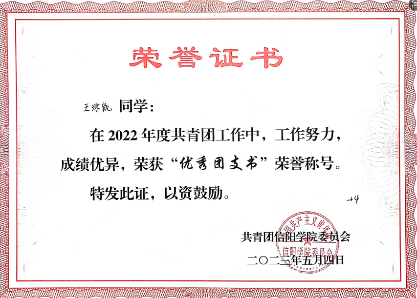 在过去的四年里,他主动帮助同学,建立了良好的人际关系,获得了大家的尊重和支持。身为寝室长,又是学生干部,王琮凯同学带头做好宿舍的卫生工作,杜绝一切不良的生活作风。拥有积极向上的生活态度和广泛的兴趣爱好,经常参与一些社会活动,为学院和班级争得荣誉,同时在社会实践和团体协作方面积累了许多经验,形成了较好的组织管理理念,更加注重团队合作和集体协作。