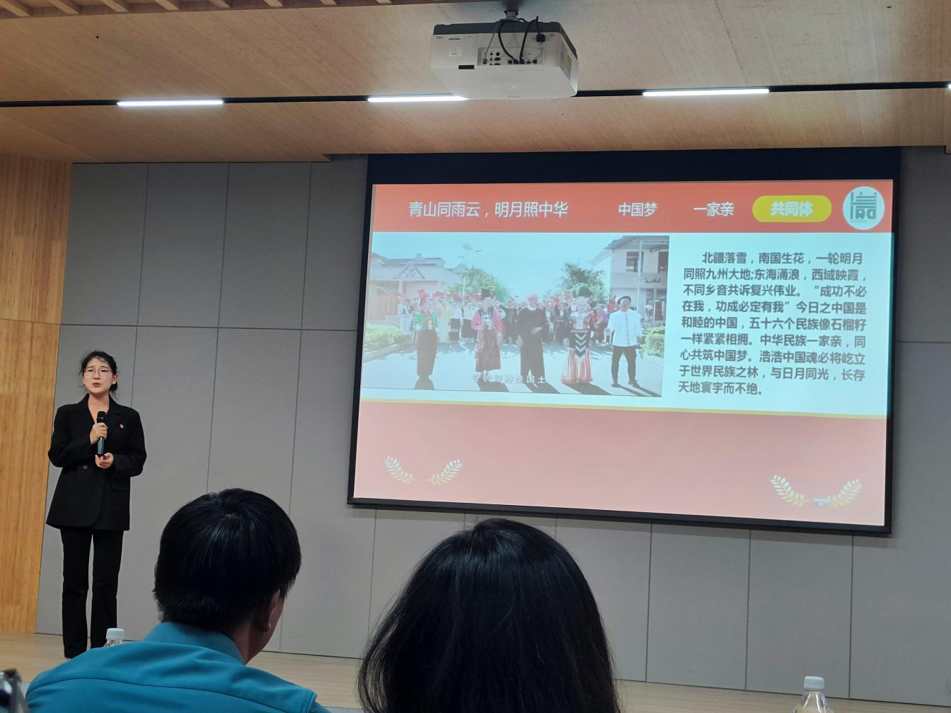 决赛现场,苏建婉以《青山同雨云,明月照中华》为题,展示了中国各民族文化的独特魅力和和谐共生的美好景象。在演讲过程中,她用饱满的热情和生动的语言阐述了对民族团结的理解和对中国梦的憧憬,演讲内容富有感染力、情感真挚,赢得了评委和观众的一致好评,充分展现了我院学子良好的个人素质和精神风貌。
