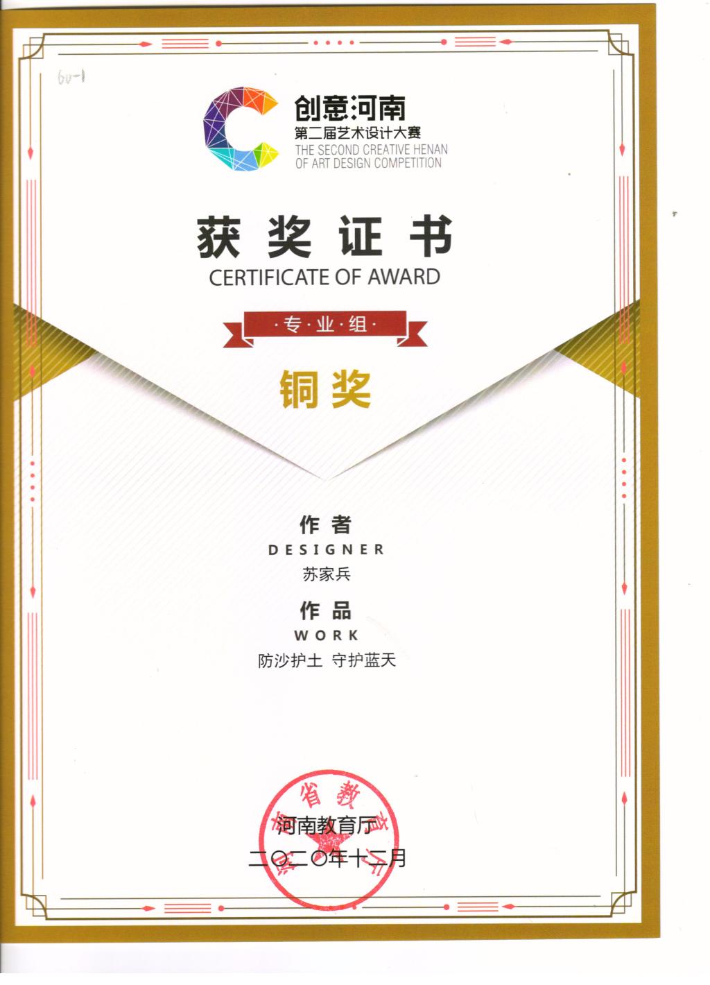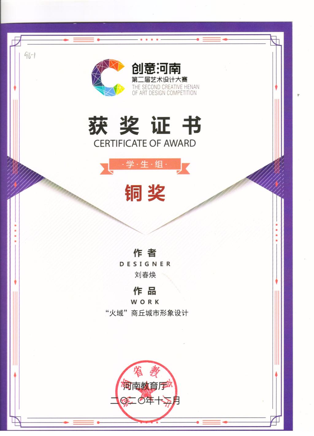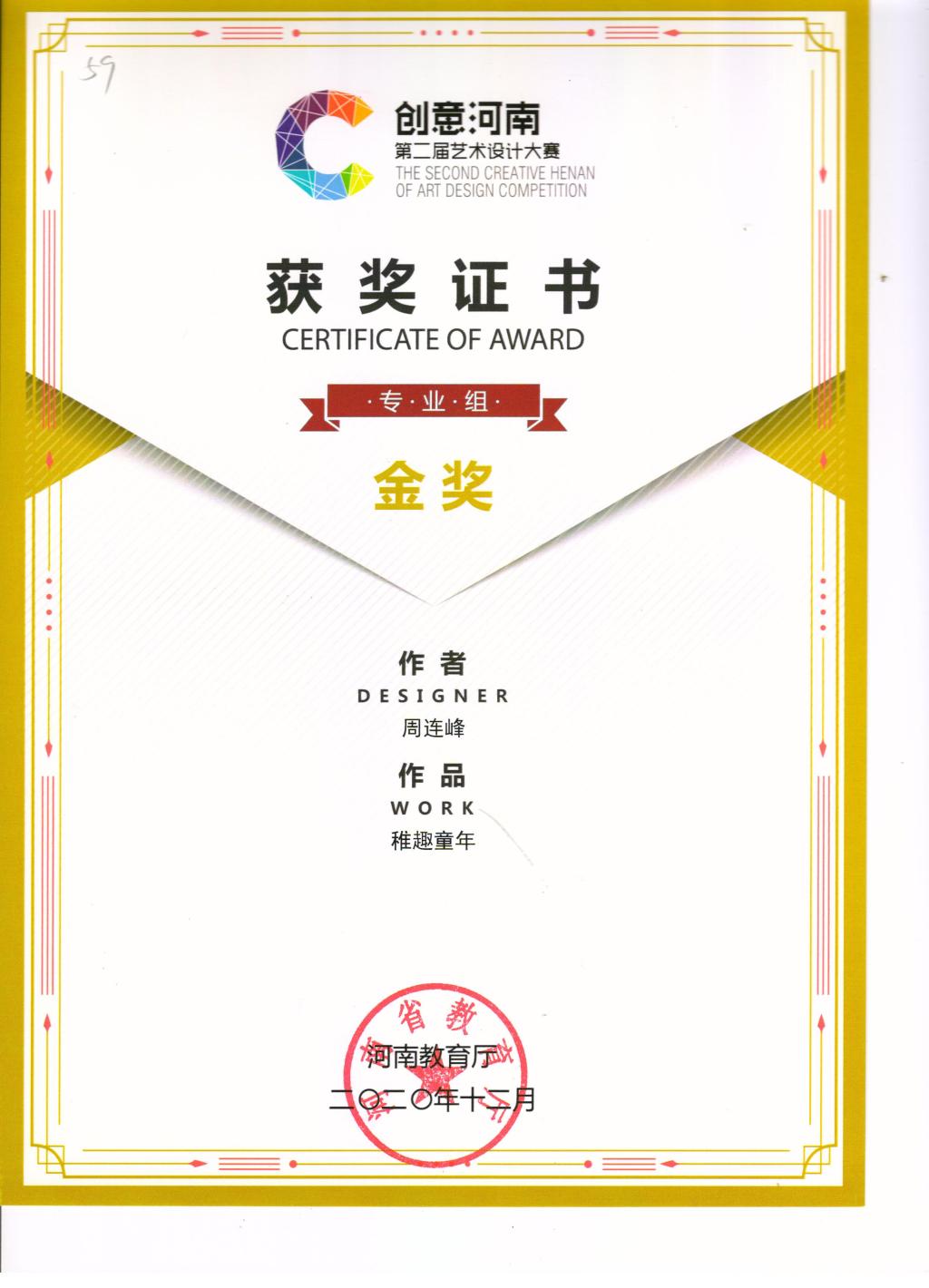 近日,由河南省教育厅主办,河南省学校艺术教育协会、郑州轻工业大学易斯顿国际美术学院、黄河科技学院承办,河南省工艺美术职业教育集团、河南安行文化发展有限公司、大河美术报、河南文化网等单位协办的第二届“创意河南”主题作品艺术设计大赛获奖结果揭晓。我院师生喜获3项金奖、2项银奖、4项铜奖、2项优秀奖。在专业组中,周连峰作品《稚趣童年》、王明月作品《豫剧人物》获得“金奖”;魏迁、王伟作品《豫见》,郑满意、王伟作品《信阳南湾渔乐》餐饮标志获得“银奖”;苏家兵作品《防沙护土,守护蓝天》,宋梦如、石留洋作品《倾城设计事务所》获得“铜奖”;李袭霏作品《小城事—重庆渝中区白象街居住街区微更新设计》获得“优秀奖”。在学生组中,张少婵作品《信阳“闷罐肉”包装设计》获得“金奖”;曾显进作品《仙灵源》、刘春焕作品《“火域”商丘城市形象设计》获得“铜奖”;谢瑾作品《罗山皮影》获得“优秀奖”;我校获得“优秀组织奖”。
