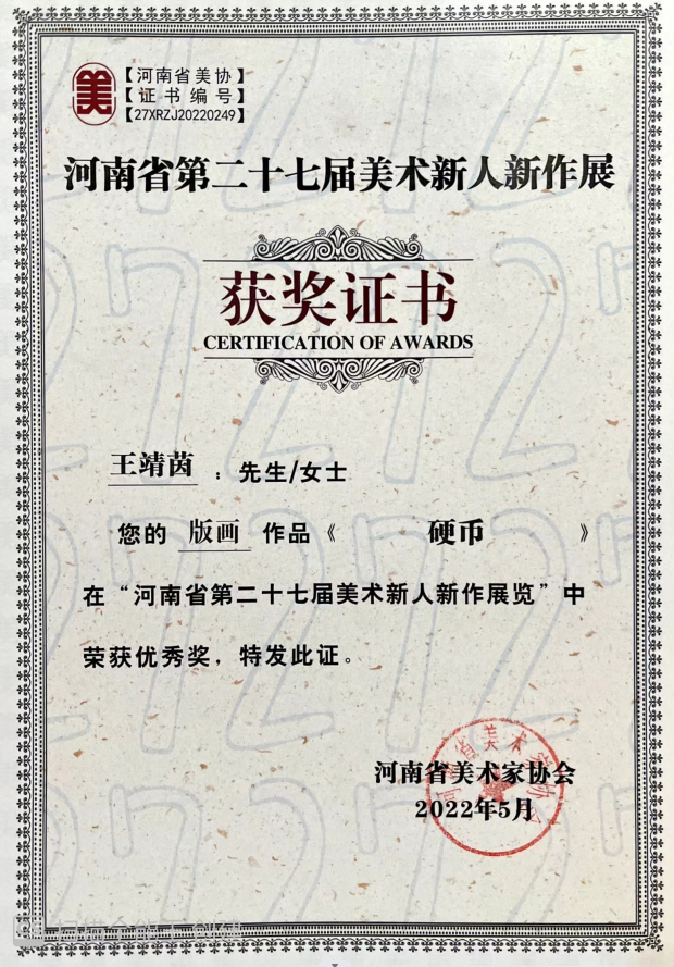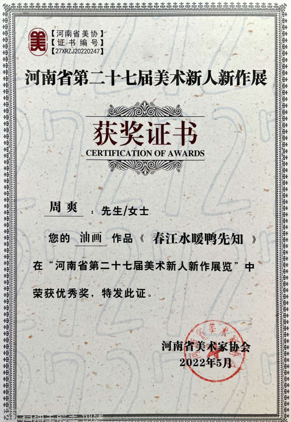 近期,河南省第二十七届美术新人新作展评选结果揭晓,我院美术学专业学生在本届展出中收获颇丰,共60名学生作品获奖,其中,10名学生作品获“优秀奖”,50名学生作品获“入选奖”。