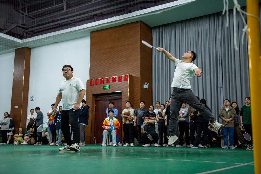 比赛过程中,选手们跑动、挥拍,高高跃起再精准扣杀,巧妙的反角度吊球,只见羽毛球在空中划出一道优美的弧线,最终落在场地界内,赢得了在场观众的阵阵喝彩,许多选手都在势均力敌中为场边的观赛者提供了一场场视听盛宴。