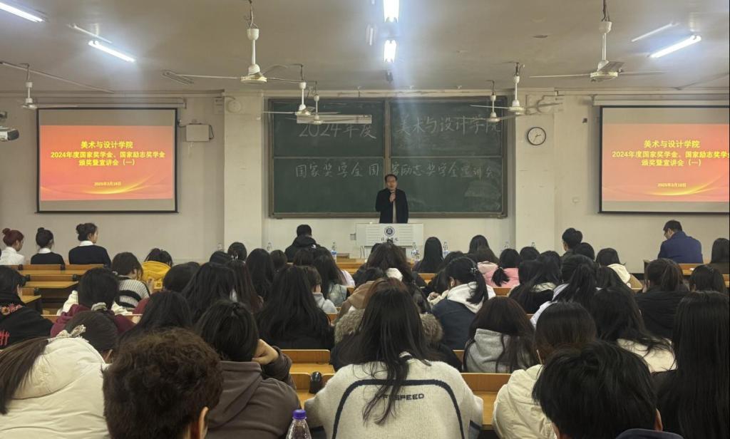 为表彰先进典型、促进学风建设,近日美术与设计学院成功举办2024年度国家奖学金、国家励志奖学金颁奖典礼和优秀学子事迹宣讲会。学院党总支书记郑山峰、学工干事秦金峰、全体辅导员老师,2024级、2023级全体在校学生参加了宣讲会,聆听榜样故事,汲取前行力量。