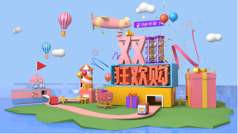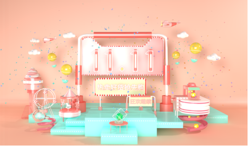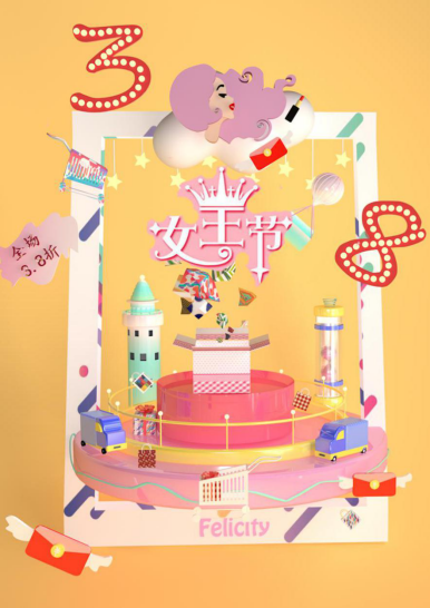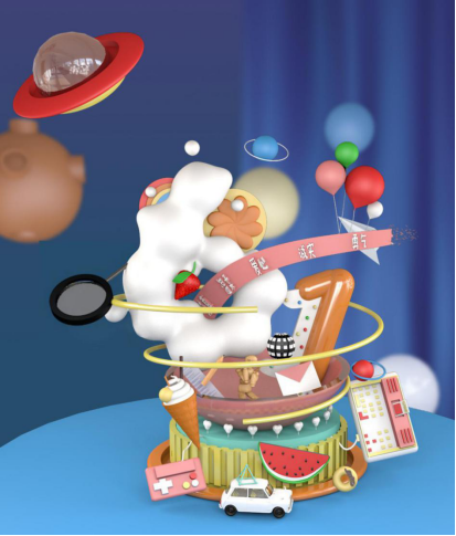 本次课程线上展览分为两个部分,第一部分为学生结课作业的展示,结课作业的要求是以节日或电商庆典为主题设计一张三维海报或者banner。第二部分为平时学生的课堂临摹或改编的案例。课堂练习的案例由教师进行关键的技术点讲解演示之后,学生自主完成,并加上些许自己的改编,主要是进行技术的练习。通过课堂中的跟随临摹练习与课后自主创作实践、教师点评指导,学生的进步明显,达到了既定的教学目标。