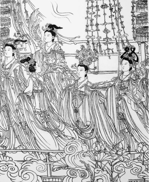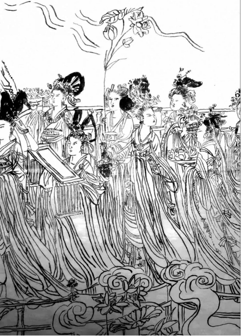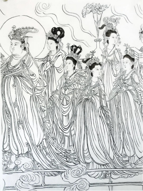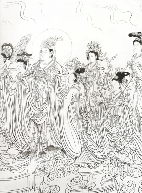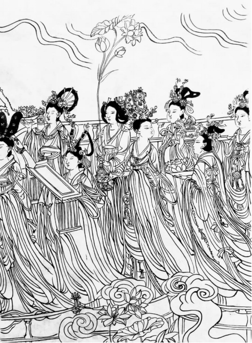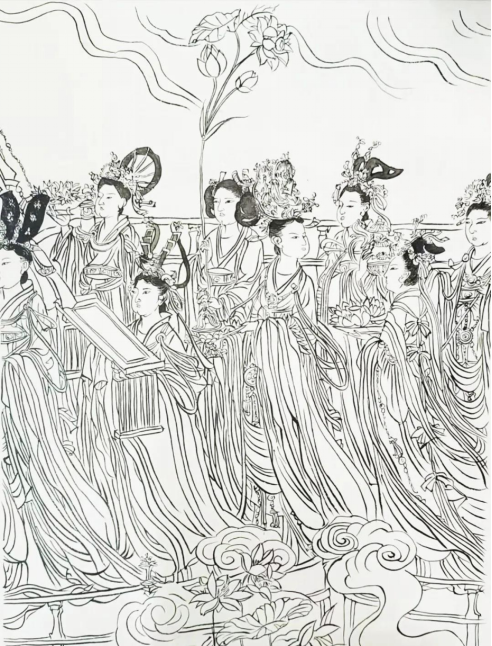 “白描”作为一种表现方法,是指用最简练的笔墨,不加烘托,描画出鲜明生动的形象。线条是中国画独特的艺术语言,具有极强的生命力与审美价值,通过对线条的轻重缓急、抑扬顿挫的节奏把握,充分表现物象的空间结构关系,强调缘物寄情,画外之谐,自成一体。