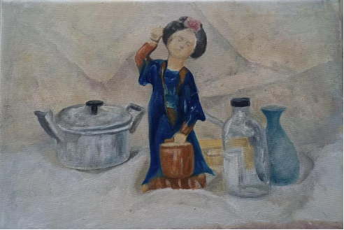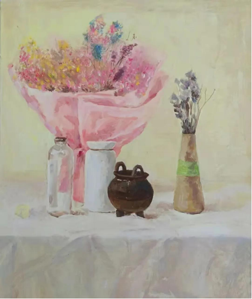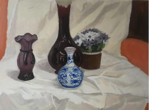 在静物写生的阶段,学生们都非常认真的在观察和组织画面,不紧不慢的在调整画面的关系,最后的画面都完成的非常出色。在写生中,同学们主动参与到静物挑选与布置当中去,我觉得这样非常好,静物的选择与安排都是绘画的过程,而且是非常重要的部分,就如同创作中的选题与构图一样,基本决定了将来的画面表达。作为第一张油画写生,同学们完成的非常优秀!