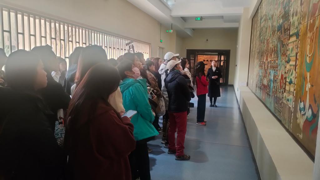 敦煌莫高窟是此次艺术考察的重点。莫高窟丰富的壁画和彩塑跨越千年,涵盖了多个朝代的艺术风格。师生们在洞窟中仔细观摩,对壁画中的色彩运用、飞天形象,以及建筑、服饰等细节深入研究,为艺术创作和文化传承提供了无尽的灵感源泉。