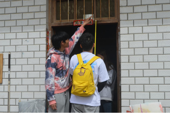 随后,向东文带领学生对当地的植被覆盖情况和地势状况进行考察,并根据所见即时进行专业讲解指导。随后由学生分成四人一小组到村内各户人家进行房屋的测量和四周环境的调查拍摄。搜集了大量的照片资料及测量数据。同时针对环境改造的需求对村民们进行了采访调研。