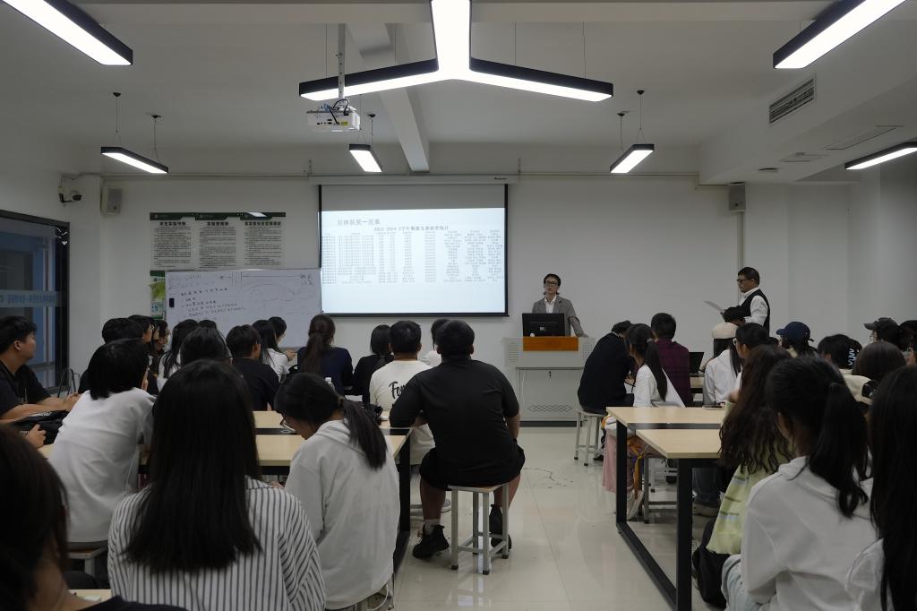 其次,教师张伟介绍了数字媒体艺术专业的相关学科竞赛以及学科未来的发展方向,针对各种竞赛的细则进行了详细地解读。同时,除了专业介绍,本次见面会还特别设置了经验分享环节。优秀学生代表张云轩、孙凡迪、苏秦缘等人分别上台发言,分享了自己的学习心得和实践经验,鼓励新生们勇于探索、不断学习,同时也提醒新生们要合理安排时间,平衡好学习与生活。