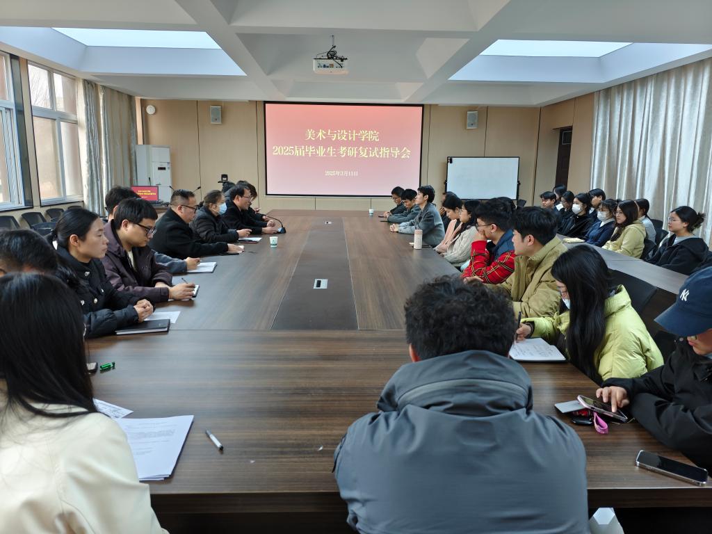 为助力学子圆梦研途,3月11日,美术与设计学院2025届毕业生考研复试指导会成功召开。学院院长张瑞瑞、党总支书记郑山峰、教学副院长王伟、教学秘书周连峰、考研指导老师和考研过线学生参加了本次会议。会议由周连峰主持。
