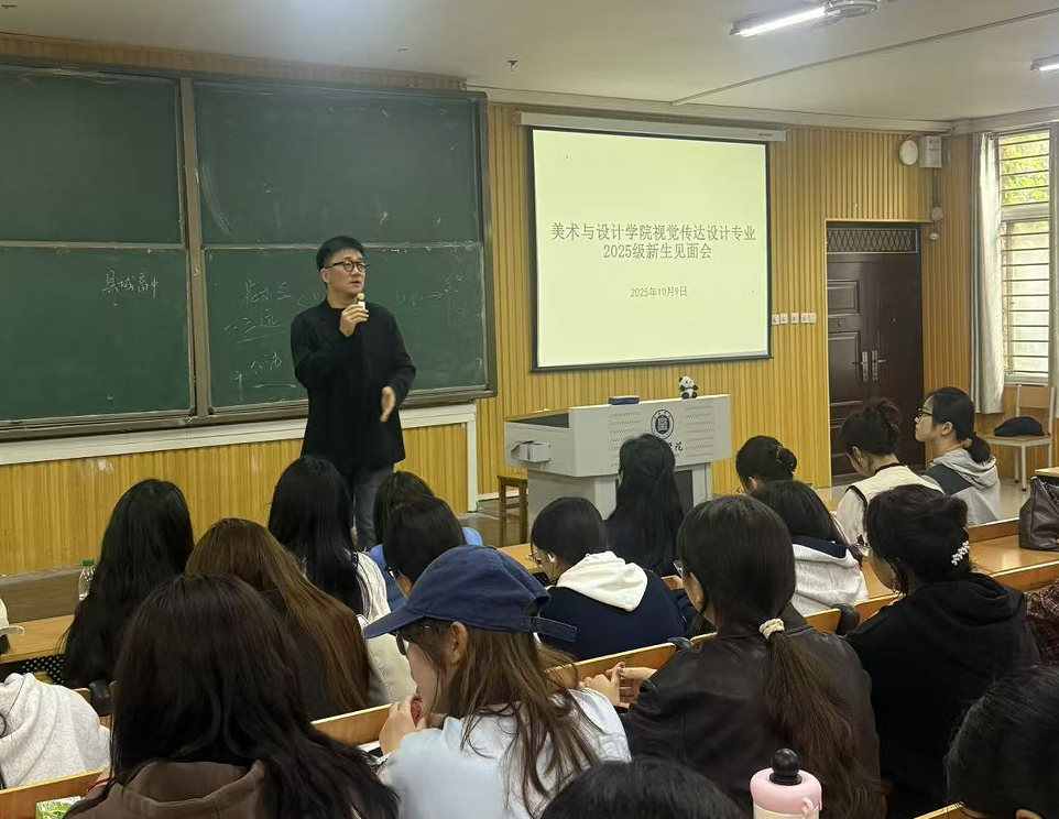 视觉传达设计专业分别于9月29日、10月9日召开专升本和本科新生见面会。教研室主任何伟在会上围绕专业培养目标,强调了视觉传达设计是连接创意与传播的桥梁,要求同学们要保持对设计的好奇心与敏感度,珍惜实践与竞赛机会,树立长远发展意识,实现能力与素养的双重提升。在场专业课教师就专业课程与核心内容、学科竞赛、校园生活、升学深造等方面作了介绍。