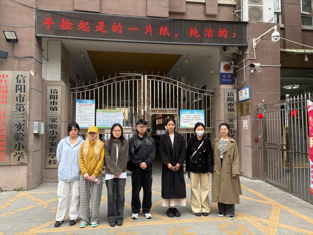 在信阳董家河镇中心学校、信阳市第七初级中学,王伟和实习基地领导座谈交流。期间还看望了在校园里开展墙绘、树洞绘等美育活动的实习生们。他鼓励实习生们在实习过程中注意发现自身在专业技巧、课堂组织上的不足和短板,虚心请教,加以改进,为实习工作画上圆满的句号。
