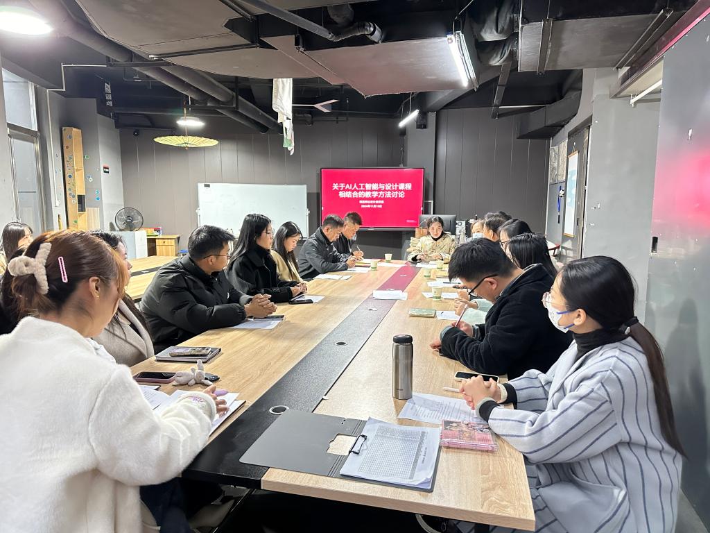 为了进一步探索数字技术在视觉传达设计教学中的创新应用,探索AI技术在教学中的融合路径,为教师提供更多的教学新思路,11月19日下午,视觉传达教研室成功举办了“AI技术与设计课程相结合的教学方法讨论”为主题的特色教研活动。院长张瑞瑞、教学质量监控中心主任陈文涛、教学副院长王伟等出席本次活动,视觉传达教研室全体教师参加。