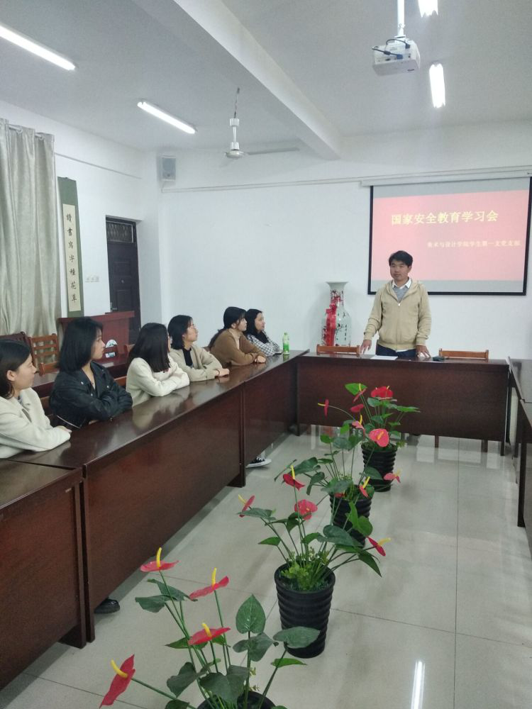 4月10号下午,美术与设计学院召开学生党支部国家安全教育会议,学习习近平总书记国家总体安全观战略思想,了解国家安全战略的基本知识和当前形势。学生党支部全体成员和部分入党积极分子参加会议,支部书记刘加宽主持。