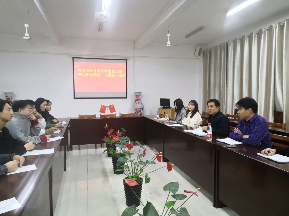 为深入推进“不忘初心、牢记使命”主题教育活动,引导学生党员干部在学习实践中使命在肩、主动作为,1113日,美术与设计学院在艺术楼215会议室开展了学生党支部“初心使命四问”主题党日活动,由党总支书记袁军主讲,全体辅导员和学生党员参加学习。