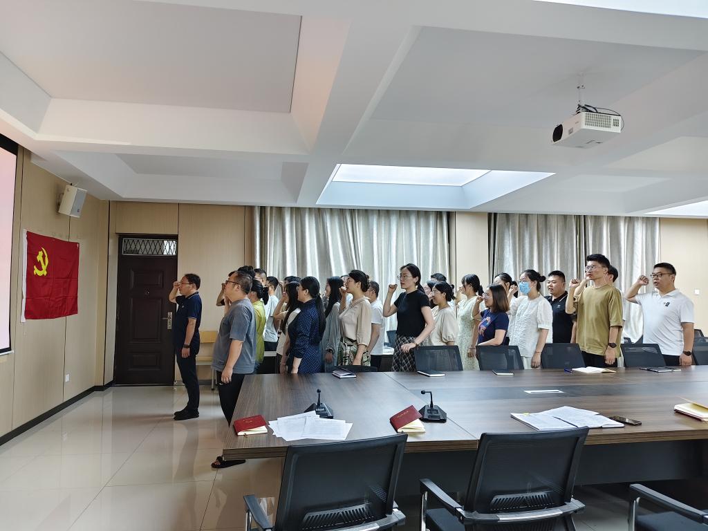 在庄严的党旗下,全体教师党员肃立,高举右拳,重温入党誓词。“我志愿加入中国共产党……”的铮铮誓言响彻会场,这是对党的庄严承诺,更是融入血脉的信仰密码。这一刻,初心再次被擦亮,使命更加清晰,激励着每一位党员在教育战线上勇毅前行。