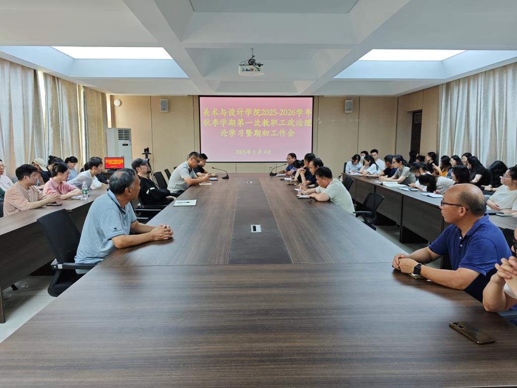 9月4日下午,美术与设计学院在艺术楼215会议室召开2025-2026学年秋季学期第一次教职工政治理论学习暨期初工作会。党总支书记郑山峰、教学副院长王伟以及全体教师参加了会议。郑山峰主持了会议。