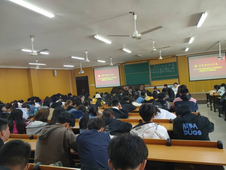 4月8日晚,美术与设计学院在艺术楼101室召开学院2021年学风宿风建设工作专题会议暨宿舍长工作座谈会。相关辅导员老师、学院学生会学习生活部学生干部代表、学院全体宿舍长、各班班长代表参加了此次会议。会议由夏晨翔老师主持。