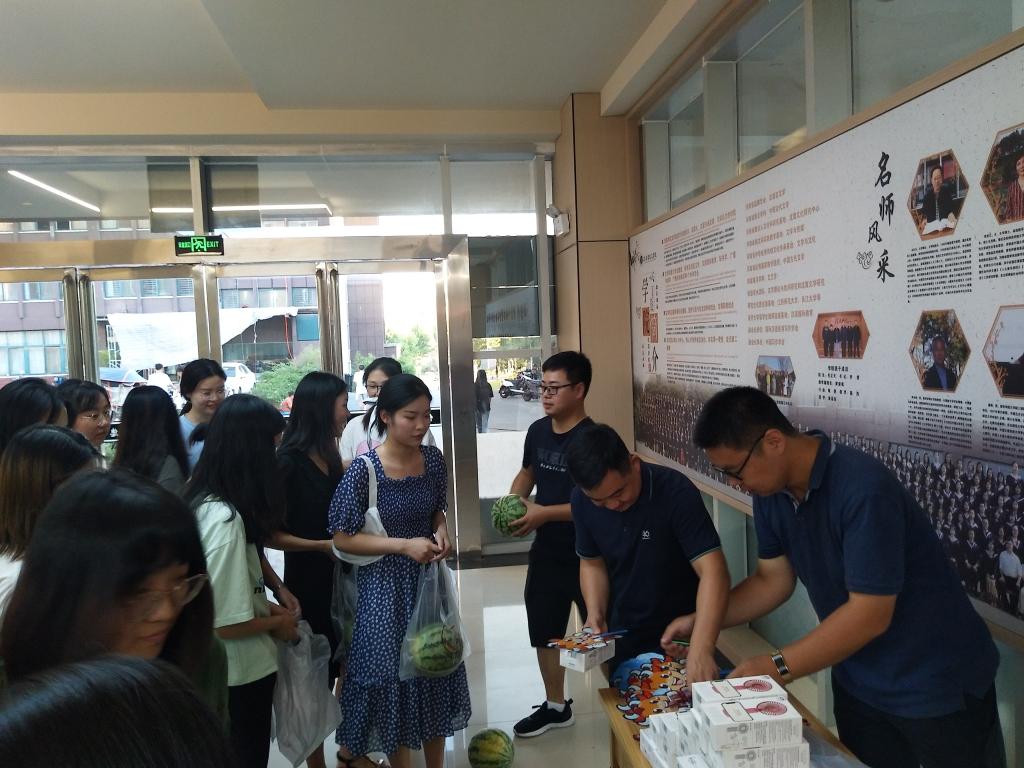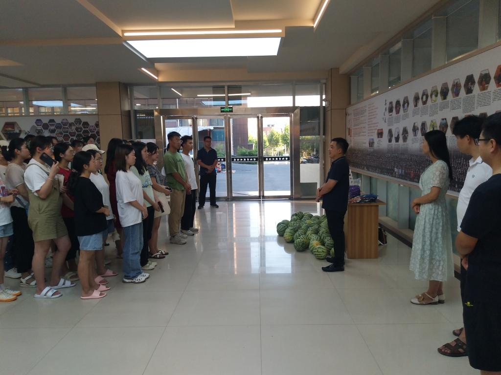 为关心和激励暑期留校考研学生能心无旁骛、安心备考,了解学生学习生活情况。7月25日下午,学院在人文楼开展“研途送清凉”2021年暑期慰问留校考研学生活动,为同学们送去西瓜、小电风扇等清凉慰问品。学院党总支副书记袁军、学工干事周扬、团总支书记刘加宽、辅导员老师谭秀梅、邓先强,2018级留校考研学生参加了本次活动。