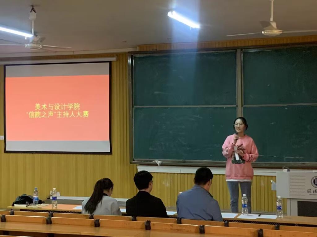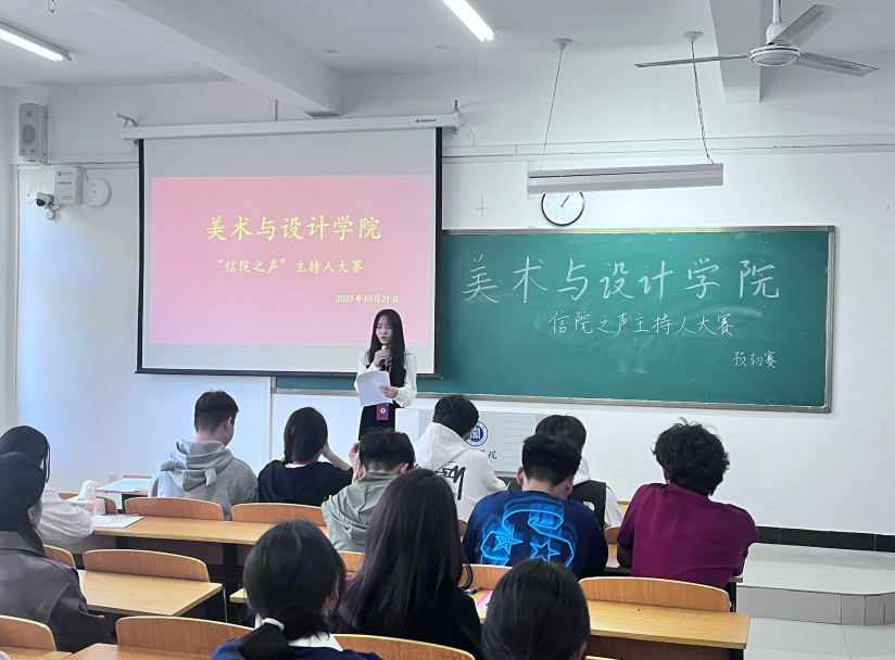 为深入学习宣传贯彻习近平新时代中国特色社会主义思想和党的二十大精神,弘扬社会主义核心价值观,进一步丰富校园生活,营造积极健康向上的校园文化氛围,近日,美术与设计学院成功举办“信院之声”主持人大赛学院选拔赛,学工干事秦金峰、辅导员余浩、杨小会出席了比赛现场。