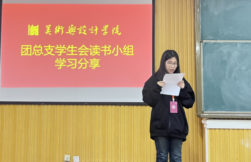阅读小组代表向大家进行阅读分享。2023级环境设计专业的范玉乐在分享中提出,在这个充满机遇和挑战的时代,我们青年一代肩负着国家繁荣与民族复兴的重任。作为新时代青年我们,要成为有理想、有担当、有能力的中坚力量,应树立正确的志向和信念,努力学习和成长,为实现中国梦作出自己的贡献。