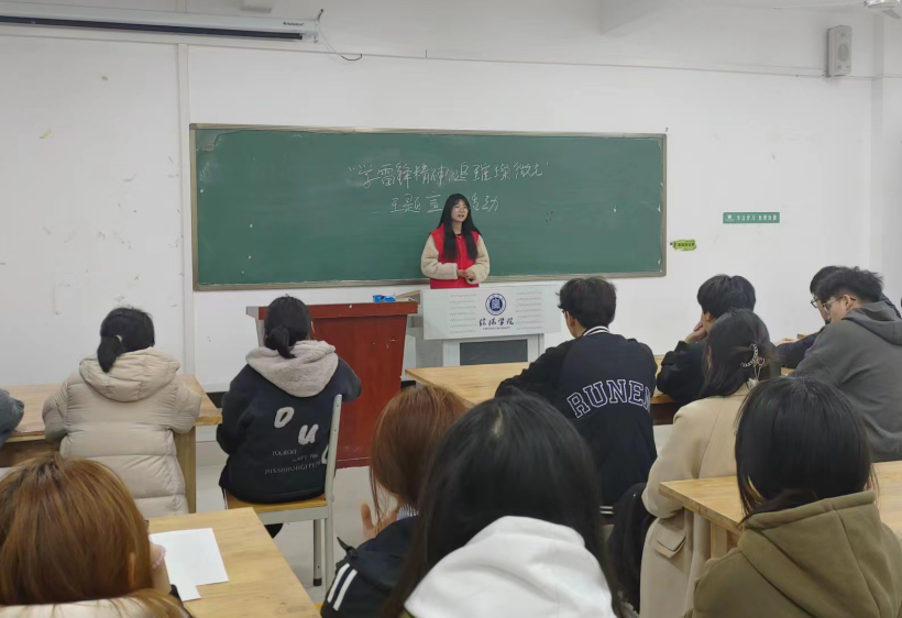 志愿者服务队深入班级开展了“学雷锋精神,追璀璨微光”主题宣讲活动,学院各个班级积极响应号召,在志愿者服务队的组织下,众多学生积极参加了形式多样的雷锋月志愿服务活动:“美丽校园,你我共建”规范停车以及校园清洁打扫等志愿活动,让同学们在活动中深刻理解雷锋精神的内涵。