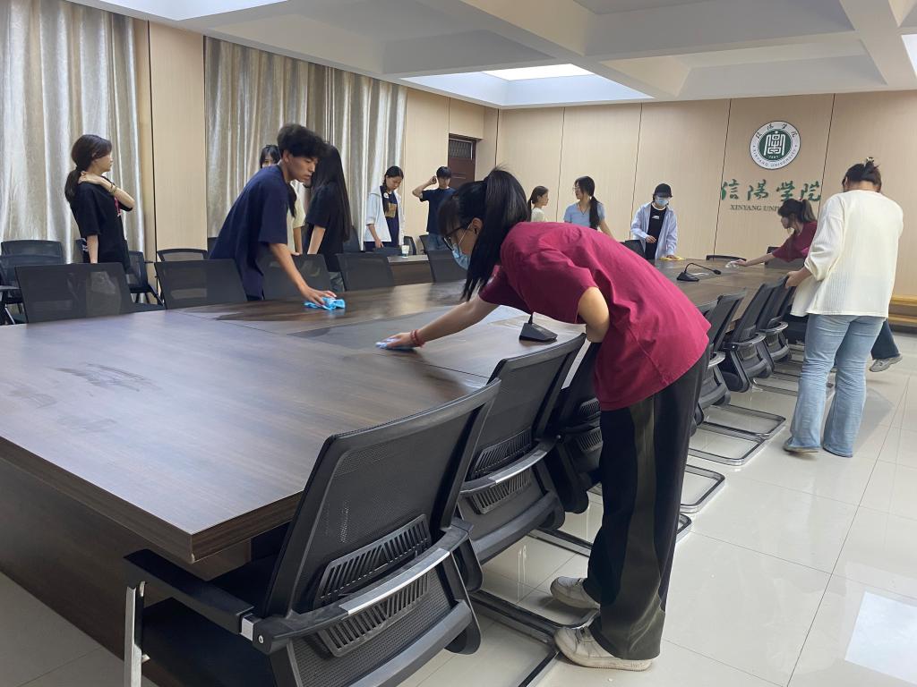 学院机房承担教学任务重,卫生死角多,清扫难度大,会议室卫生需要时刻保持整洁,为营造干净整洁的学习及工作环境,学院组织入团积极分子清扫艺术楼5间机房以及会议室。同学们认真细致打扫每一处卫生死角,清理电脑键盘、主机显示屏上的落灰,桌椅摆放整齐。同学们分工明确,热情劳动,通过亲身参与奉献自我,把握雷锋精神的时代内涵,用实际行动为同学们的学习环境美化贡献力量。