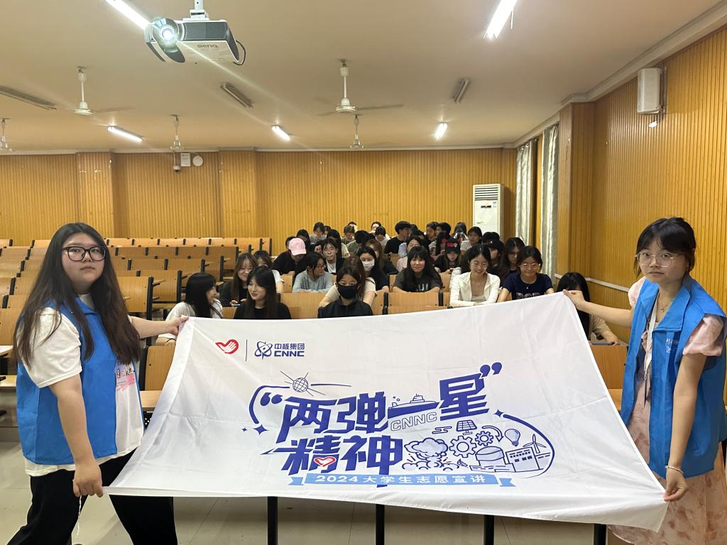 在活动中,宣讲人向大家介绍关于“华龙一号”的诞生和现状,依次介绍了华龙一号的研发历程、创新成果、示范工程,以激发大家探索未知,敢于创新的热情,让大家学习不屈不挠的奋斗精神和淡泊名利的无私奉献。“两弹一星”精神的宣讲,让同学们深刻意识到“两弹一星”精神是在艰难困厄之中产生的,是中华民族的宝贵精神财富。