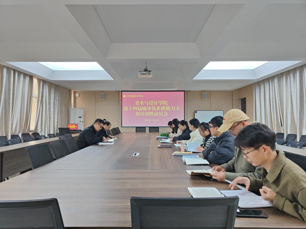 11月18日下午,美术与设计学院在艺术楼215会议室召开第十四届辅导员素质能力大赛培训会暨赛前动员会。学院党总支书记郑山峰、学工干事秦金峰,全体辅导员参加了本次会议,会议由秦金峰主持。