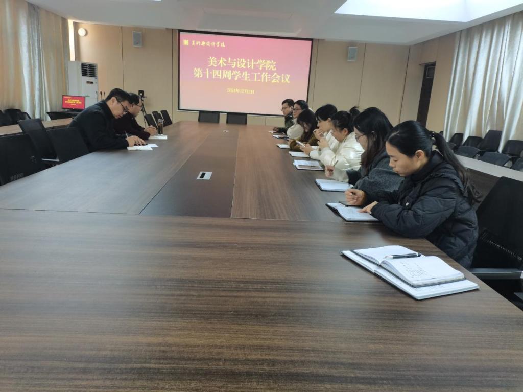 12月2日上午,美术与设计学院在艺术楼215会议室召开第十四周学生工作例会。学院党总支书记郑山峰、学工干事秦金峰和全体辅导员参加了会议,会议由秦金峰主持。