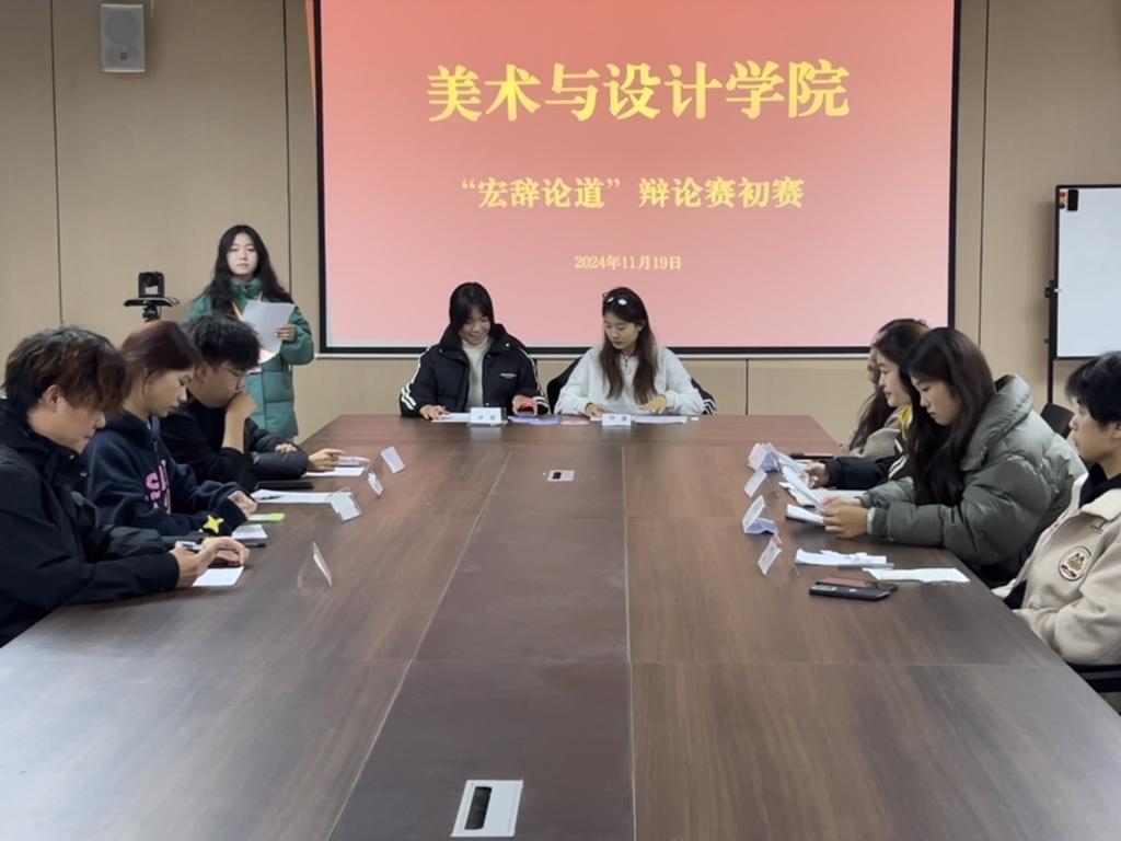 为提升2024级新生的逻辑思维能力和语言表达能力,同时为新生提供一个展示自我、交流思想的平台。12月,美术与设计学院学生会于在艺术楼215开展第一届新生“宏辞论道”校园辩论赛。