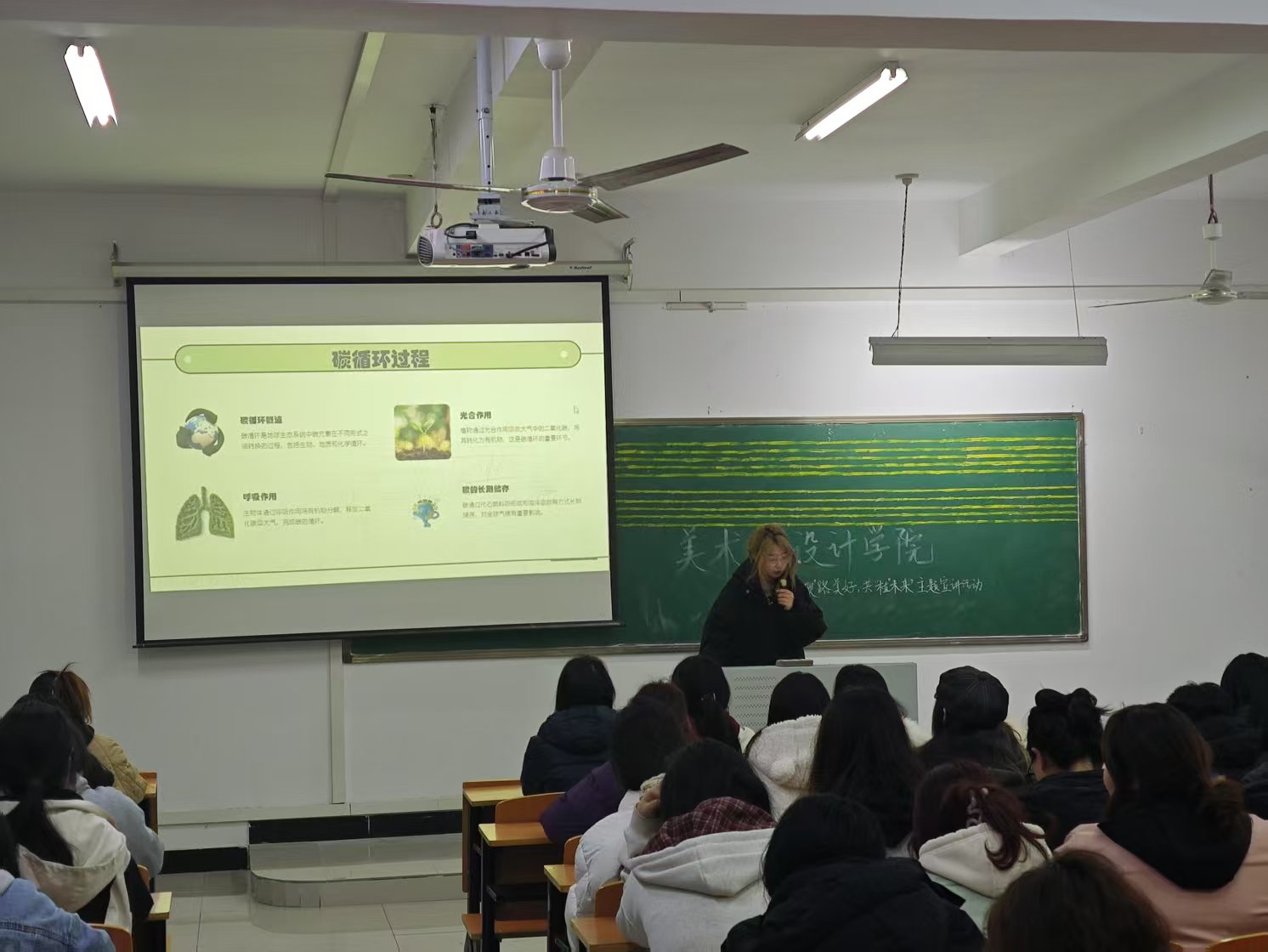3月11日,美术与设计学院学生会宣讲团在艺术楼208开展一场以“碳路美好,共植未来”为主题的生态文明宣讲活动。