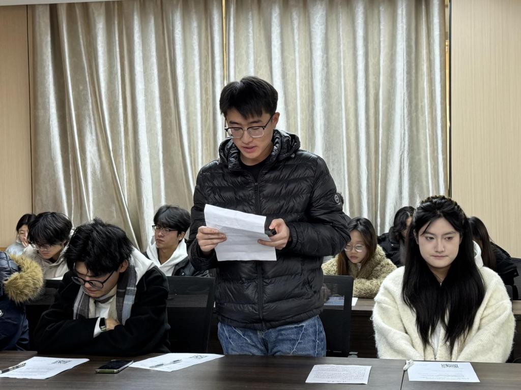 为深入了解新生入学后的学习生活情况,畅通师生沟通渠道,12月16日中午,美术与设计学院在艺术楼215会议室召开2025级学生代表座谈会。学院党总支书记郑山峰、副院长王伟、教学秘书周连峰、学工干事秦金峰、各教研室主任、2025级辅导员及学生代表参加了座谈会。会议由秦金峰主持。