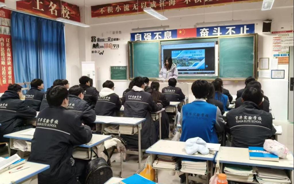 心怀荣耀队马赛佳、马赛嘉、常予睿、边圆、李苏静、袁泉六位队员重返许昌宇华实验中学,与班主任深入沟通,精准把握高三学子的学业困惑与发展需求。团队通过播放校园纪实短片、发放调查问卷,全面了解学弟学妹的真实状态,立足自身大学经历,为大家提供有效的学业规划与生涯建议,让“过来人”的经验真正成为看得见、用得上的成长助力,让活动既有温度,更有实效。