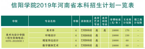 美术与设计学院2019年河南省本科招生计划一览