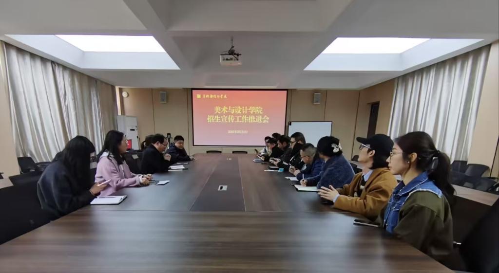 为落实学校2025年招生就业工作会议要求,提升学院招生宣传效果,3月18日,美术与设计学院在艺术楼215会议室召开招生宣传工作推进会,院长张瑞瑞、党总支书记郑山峰、教学副院长王伟,各教研室主任及负责招生宣传的相关教师参加本次会议。会议由郑山峰主持。