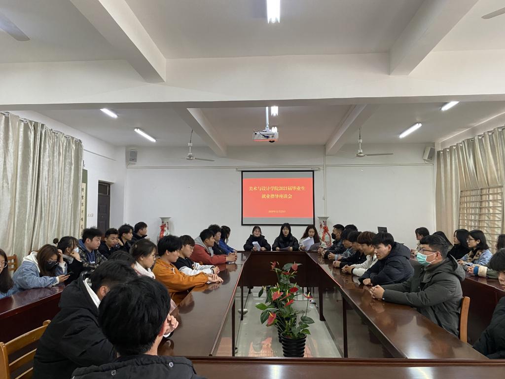 12月23日下午,美术与设计学院在艺术楼215会议室召开2021届毕业生就业指导交流和座谈会。学院学生就业工作专门负责人陈晓倩,辅导员老师冯慧、李静,学院2021届毕业生代表参加了本次座谈会。会议由陈晓倩主持。