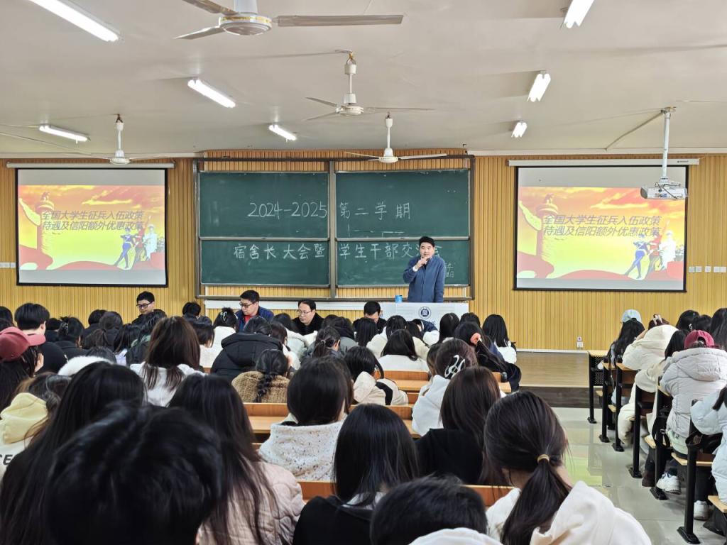 刘加宽首先对报名时间和条件等征兵基本信息进行介绍,接着,对征兵入伍同学在部队发展、优待金发放、退役后安置、考研和考公务员等政策进行讲解。最后刘加宽鼓励大家积极参军、报效祖国,实现自己人生价值和梦想。