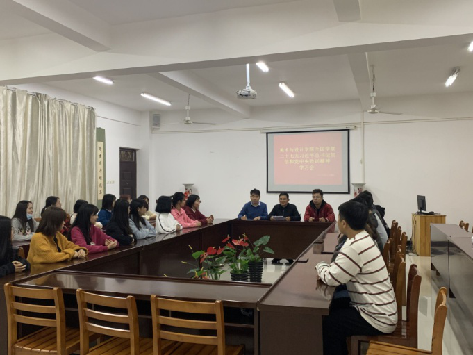 为深入学习贯彻习近平总书记致全国学联二十七大的贺信和党中央致辞精神,贯彻落实全国学联二十七大会议精神要求。10月6日至7日,美术与设计学院召开为期两天的全国学联二十七大习近平总书记贺信和党中央致词精神学习讨论会。学院党总支副书记袁军、学工干事周扬、团总支书记刘加宽,学院学生会学生干部代表参加会议。