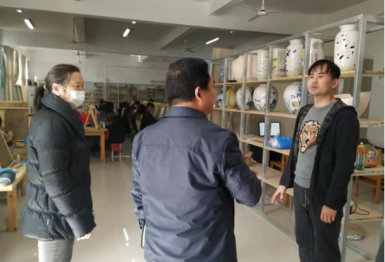 座谈会后,褚金海一行参观了美术与设计学院泥塑与陶艺实验室和展厅。