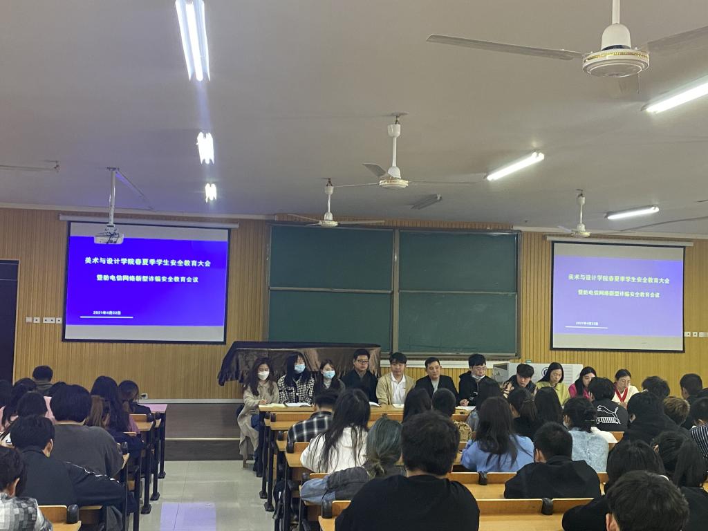 4月22日中午,学院在艺术楼101室,召开2021年春夏季学生安全教育大会暨防电信网络新型诈骗安全教育专题会议。学院党总支副书记袁军、学工干事周扬、学院全体辅导员,以及学院全体班级班长、各年级班级寝室长代表共200余人参加了本次会议。会议由周扬主持。