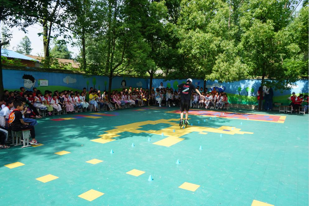 活动双方代表共同为“社会实践基地”揭牌。服务队成员向孩子们捐赠了彩笔、绘图本等学习文具用品。随后,我院学生表演了花样轮滑、器乐演奏、手指舞等节目,并穿着玩偶装和孩子们互动,一起折叠千纸鹤,活动气氛热烈,每个小朋友们都洋溢着欢乐的笑脸。