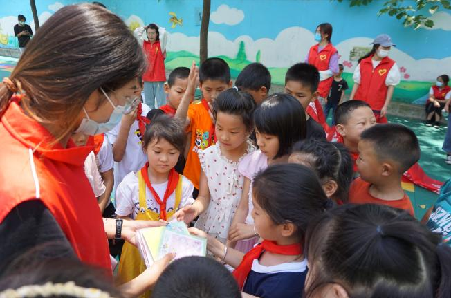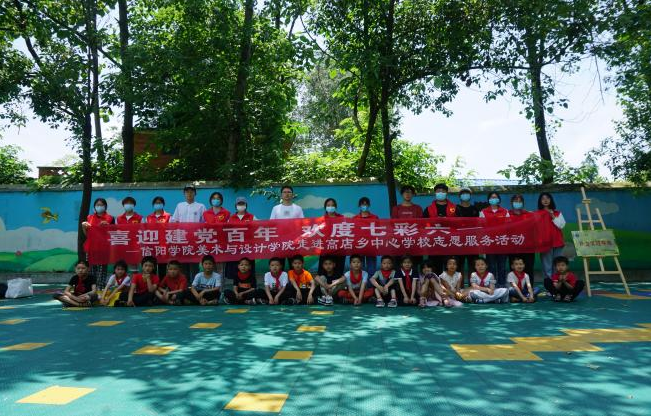 喜迎建党百年,欢度七彩六一。5月31日上午,美术与设计学院志愿服务队一行带着学院师生的美好祝福,前往信阳罗山县高店乡中心学校举行志愿服务实践基地挂牌仪式,给当地的小朋友们赠送六一礼物,共度六一儿童节,受到该校师生的热情欢迎。
