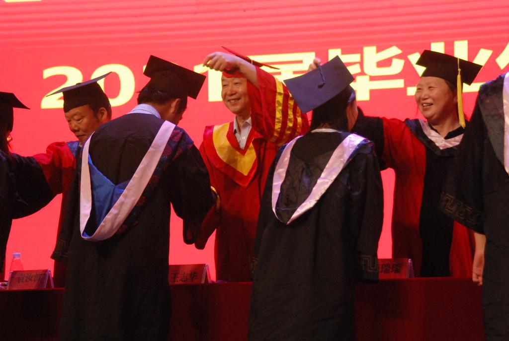 在充满欢快激昂、婉转温情的旋律中,校领导与专家教授们集体为登台的毕业生们授予学位、正冠拨苏,赠予寄语,合影留念。
