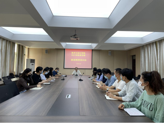 10月1日下午,美术与设计学院新进教师培训会在艺术楼215室召开,出席本次会议的有美术与设计学院院长张瑞瑞、教学秘书周连峰、教务员及新进教师,会议由张瑞瑞院长主持,通过漫谈的形式与新进教师进行沟通交流。